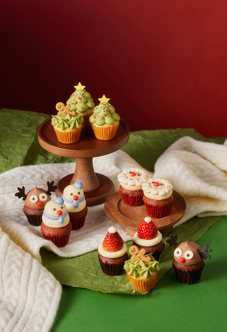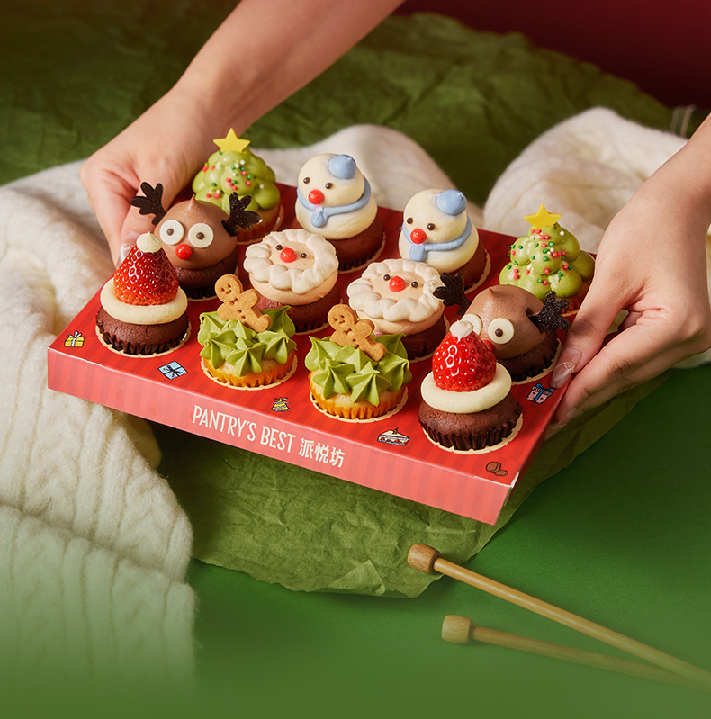 以红丝绒/巧克力/柠檬纸杯为承托,勾画出6种可爱圣诞造型,共12只迷你纸杯