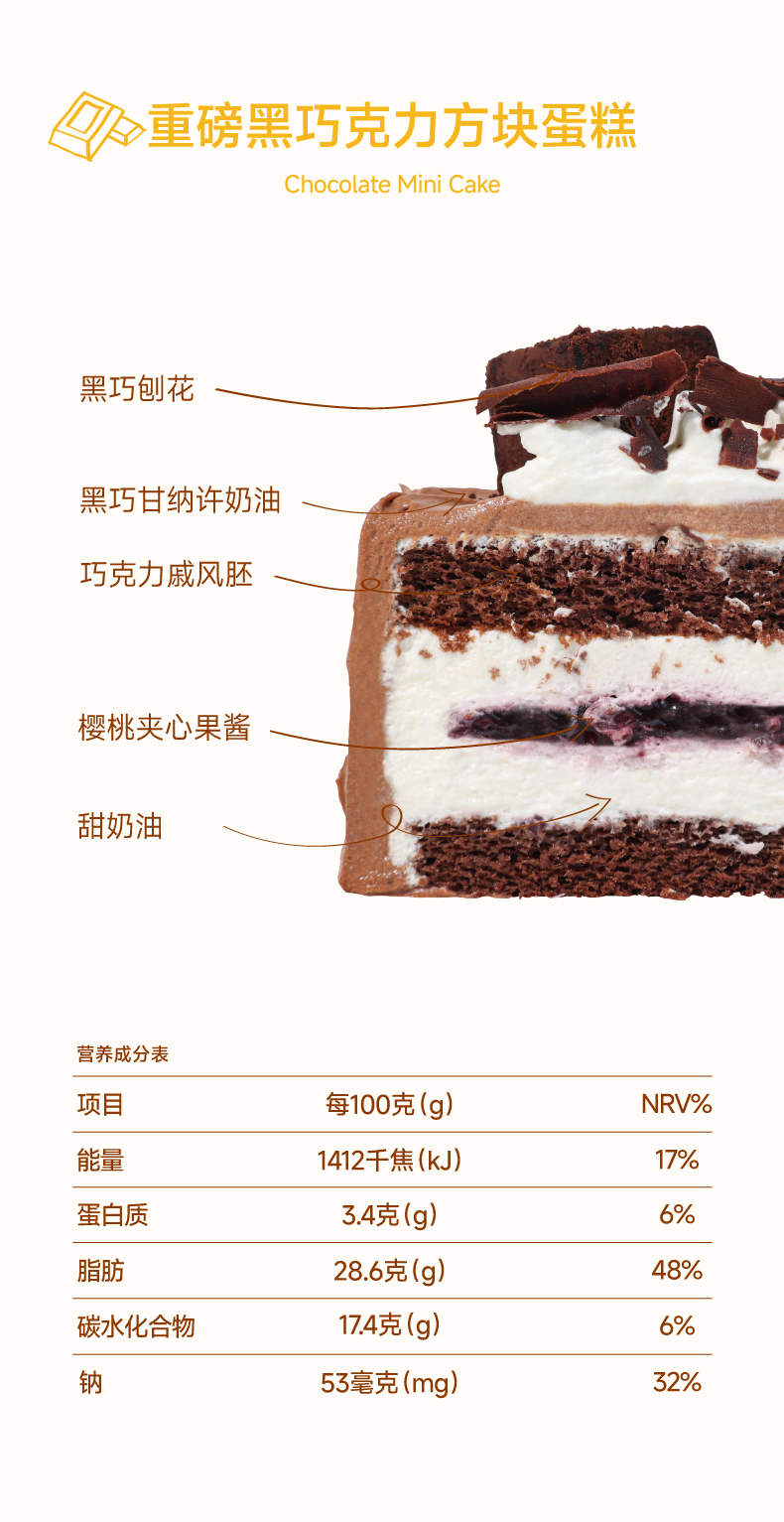 小粒生巧,搭配黑巧克力果酱、甜奶油和巧克力戚风蛋糕胚