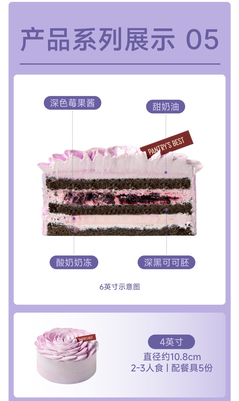 四种深紫色莓果,酸奶奶冻夹心,搭配深黑可可蛋糕胚